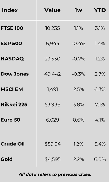 The yen was volatile but stabilised near JPY 158 per US dollar following verbal intervention from officials. Government bond yields rose as investors priced in higher fiscal spending, while speculation grew that the Bank of Japan could bring forward its next interest rate rise.